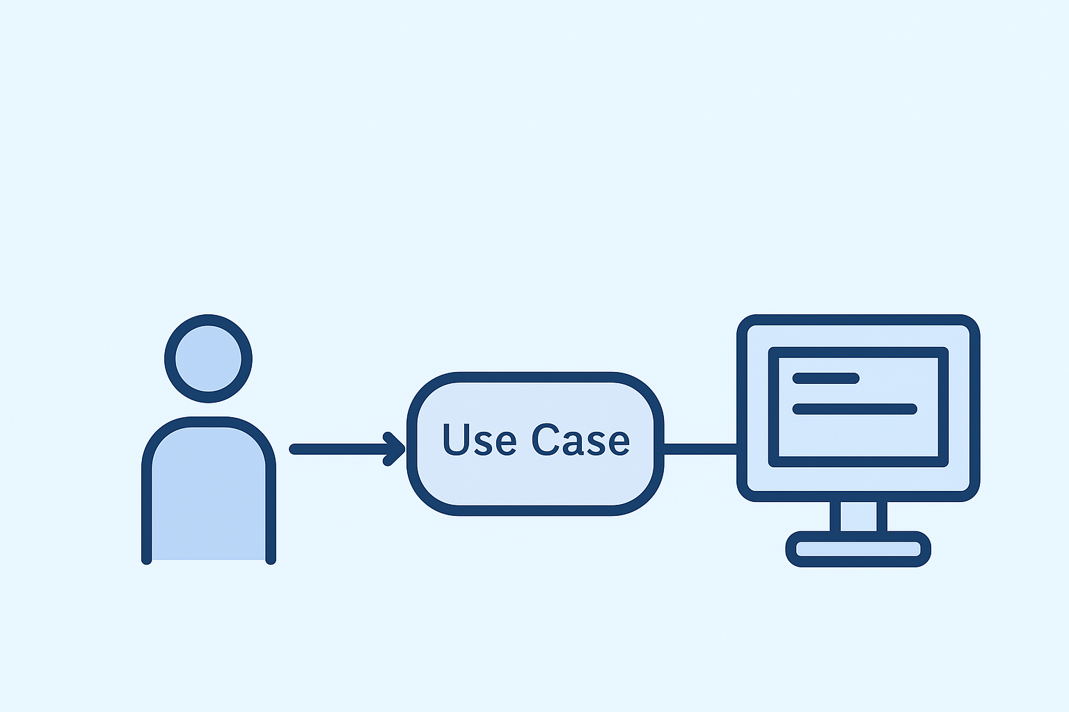 الـ Use Case هو وصف بسيط لسيناريو تفاعل المستخدم (Actor) مع النظام لإنجاز مهمة محددة. يوضح من يقوم بالخطوة؟ وماذا يحدث بعدها؟
